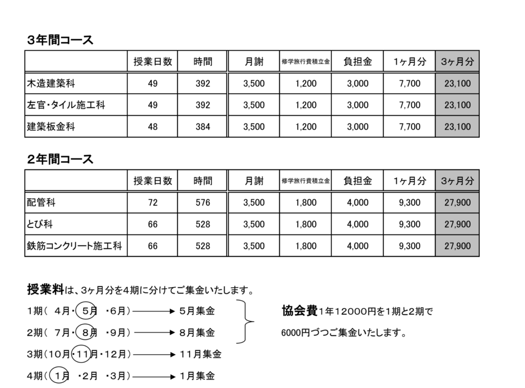 「渋川地区高等職業訓練校」は優秀な技能を習得するため、群馬県の認定のもとで運営されております。